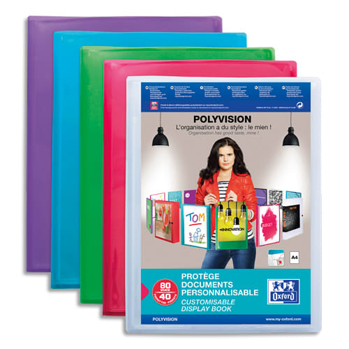 OXFORD Protège-documents personnalisable Polyvision 80 vues, 40 pochettes. En polypropylène. Assortis