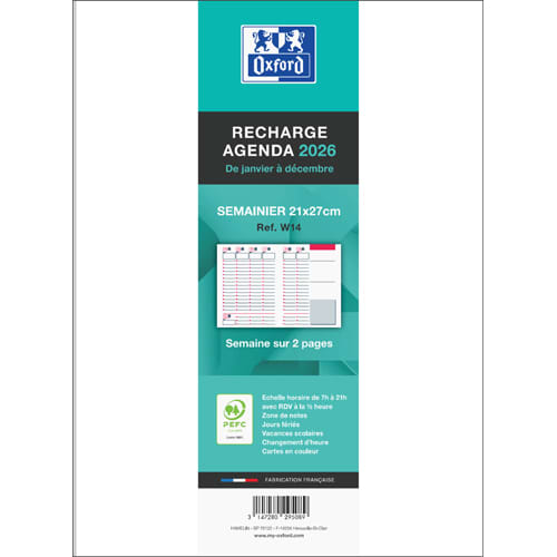 Soyez le premier à laisser votre avis sur “OXFORD Recharge pour agenda RECHARGE 21X27 Cousu Janvier à décembre” Annuler la réponse