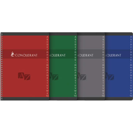 CONQUERANT C7 Répertoire spiralé 180 pages 70g 21×29,7cm petits carreaux 5×5. Couverture carte vernie