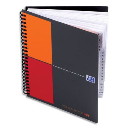 OXFORD Cahier ADRESSBOOK spirales 144 pages 80g réglure bi-colore 17x21cm Couverture polypro Gris