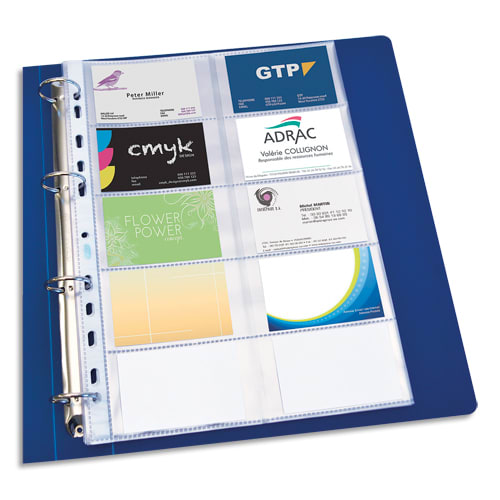 OXFORD Sachet de 10 pochettes perforées cartes de visite en PVC 10/100e. Format A4. Perforation 11 trous