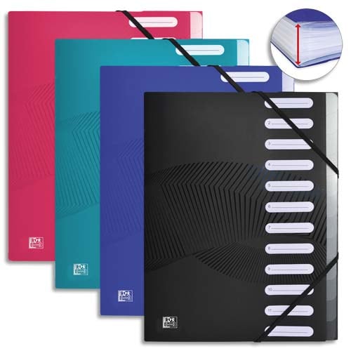 OXFORD Trieur à rabat extensible OSMOSE format A4 12 positions PP 5/10e. Coloris assortis