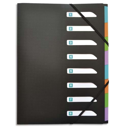 OXFORD Trieur Memphis 8 positions en polypropylène opaque. Fermeture par élastique. Coloris Noir