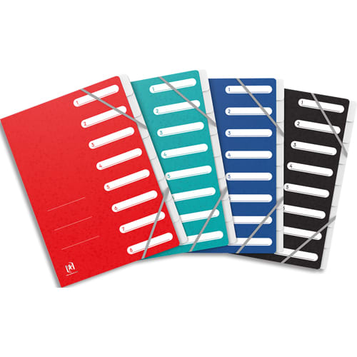 OXFORD Trieur 12 positions, couverture en carte lustrée 5/10ème, dos riveté. Format A4. Coloris assortis