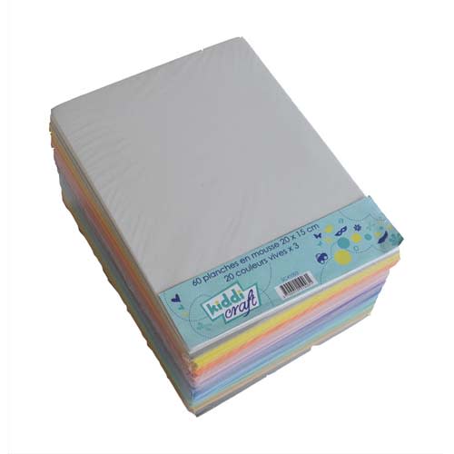 OZ INTERNATIONAL Lot de 60 planches de mousse format 20 x 15 cm couleurs assorties, 3 pièces par couleur