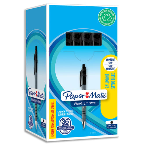 PAPERMATE Pack de 30+6 Stylo à bille pointe moyenne rétractable corps caoutchouc FLEXGRIP Noir