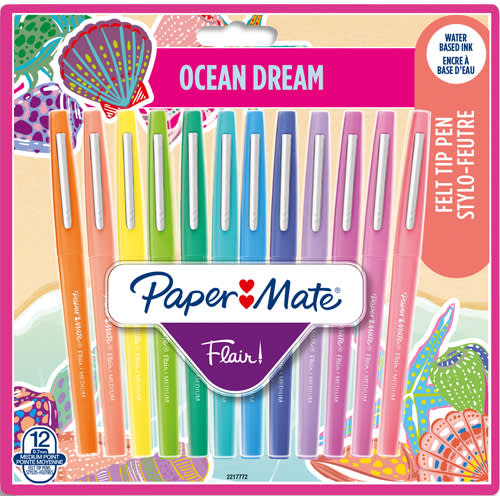 PAPERMATE Pochette de 12 Stylos feutres FLAIR Original OCEAN DREAM, pointe 0,4mm