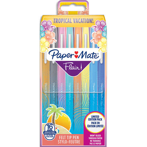 PAPERMATE Pochette de 16 Stylos feutres Flair Original Tropical, pointe 0,4mm