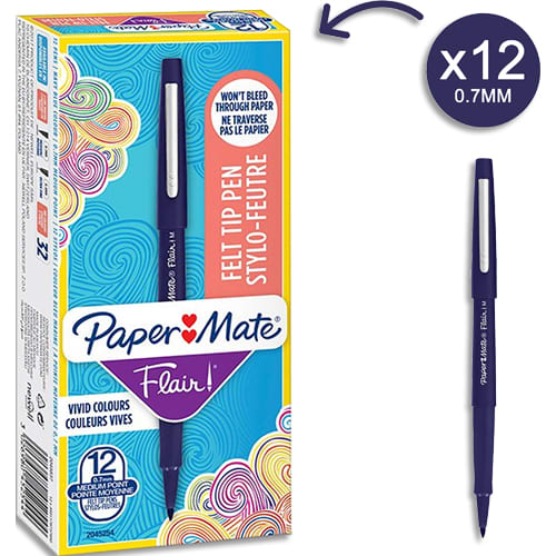 PAPERMATE Stylo feutre Flair Original, pointe M Trait 0,7 mm Bleu Marine