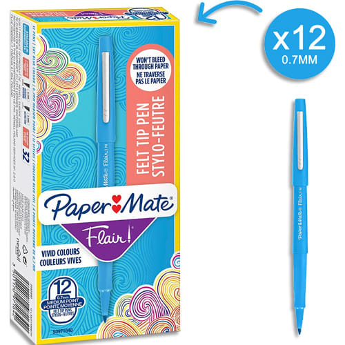 PAPERMATE Stylo feutre Flair Original, pointe M Trait 0,7 mm Bleu turquoise
