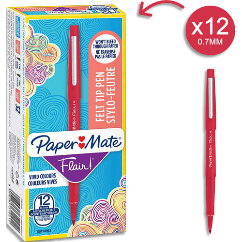 PAPERMATE Stylo feutre Flair Original, pointe M Trait 0,7 mm Rouge