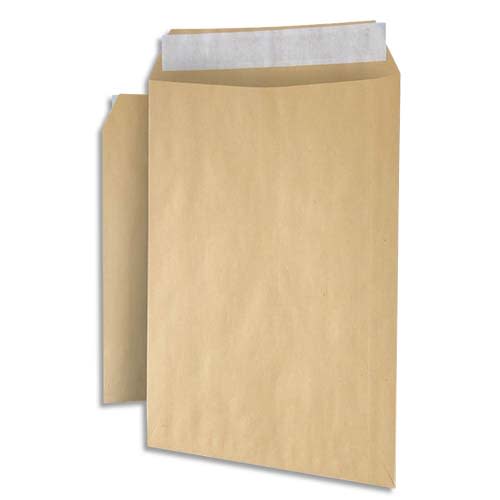 Paquet de 250 pochettes plates kraft brun recyclé 90g, C5 : 162x229mm. Autoadhésive