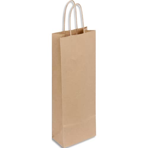 Paquet de 50 sacs kraft économique pour bouteille avec poignées torsadée 140 + 80 x 390 mm