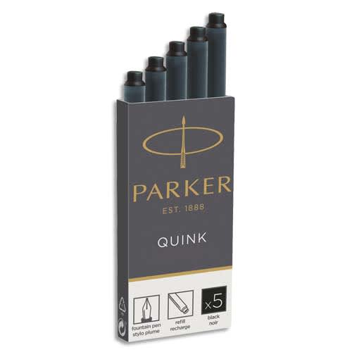 PARKER Etui de 5 cartouches longues QUINK encre Noire. En blister.