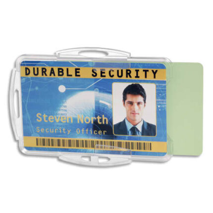 DURABLE Boîte 10 Porte-badges fermé pour 2 cartes format portrait ou paysage – L85 x H54 mm – Transparent