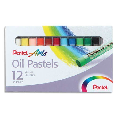 PENTEL Boîte de 12 pastels à l’huile diamètre 8 mm, couleurs assorties