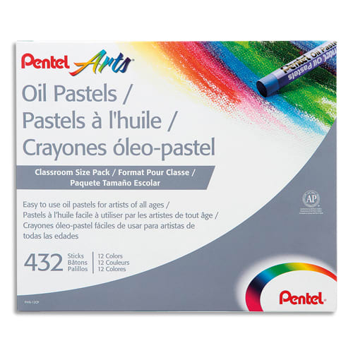 PENTEL Boîte de 432 pastels à l’huile diamètre 8 mm, couleurs assorties