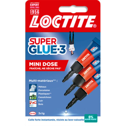 SUPER GLUE Blister de 3 tubes 1g de colle liquide instantanée SUPERGLUE Original