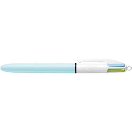 BIC Stylo bille 4 couleurs rétractables Shine. Pointe Moyenne (1,0 mm) – Corps Métallisé Bleu