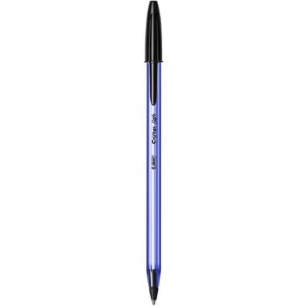 BIC Ecriture Cristal Soft Stylos-Bille Pointe Moyenne (1,2 mm) – Corps Bleu Ciel – Encre De Couleur Noire
