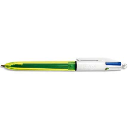 BIC Stylo bille 4 couleurs rétractables Fluo. Pointe Moyenne x3 (1,0 mm) + pointe fluo (1,6 mm)
