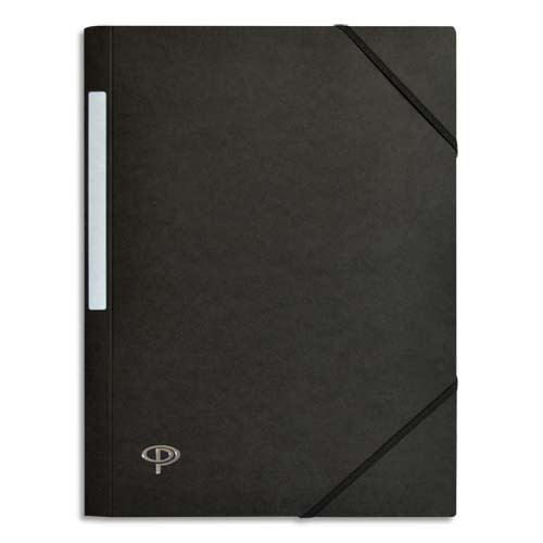 PERGAMY Chemise 3 rabats monobloc à élastique en carte lustrée 5/10e, 390g. Coloris Noir.