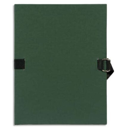 Couverture en papier grainé. Fermeture à sangle Noire et boucle nickelée à coulisseau cranté. Dos extensible jusqu’à 13 cm. Sans rabat en pied.