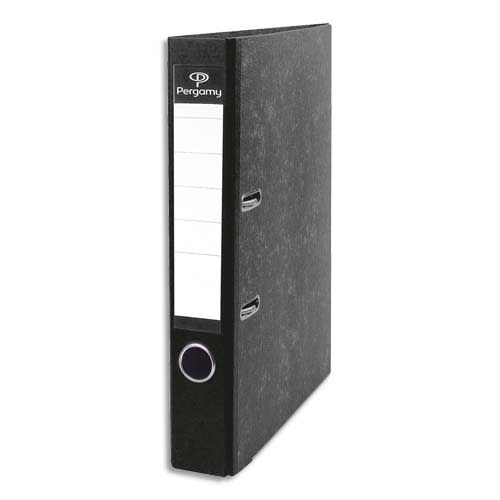 PERGAMY Classeur à levier en carton Gris intérieur/extérieur marbré. Dos 5cm. Format A4. Coloris dos Noir