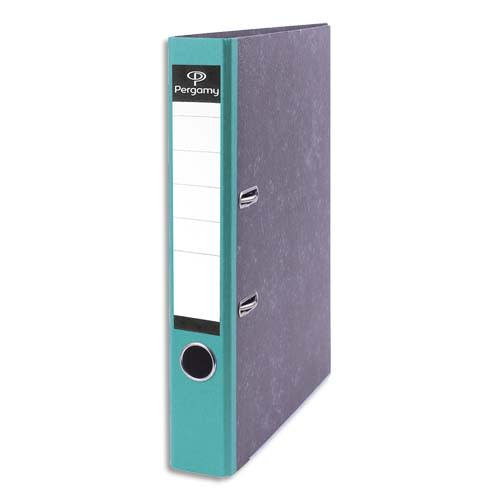 PERGAMY Classeur à levier en carton Gris intérieur/extérieur marbré. Dos 5cm. FormatA4. Coloris dos Vert