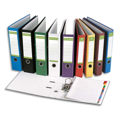 PERGAMY Classeur à levier en papier recyclé intérieur/extérieur. Dos 5cm. Format A4. Coloris Rouge