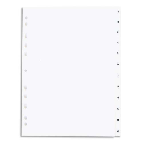 PERGAMY Jeu 12 intercalaires numériques 1-12 polypropylène format A4. Coloris Blanc