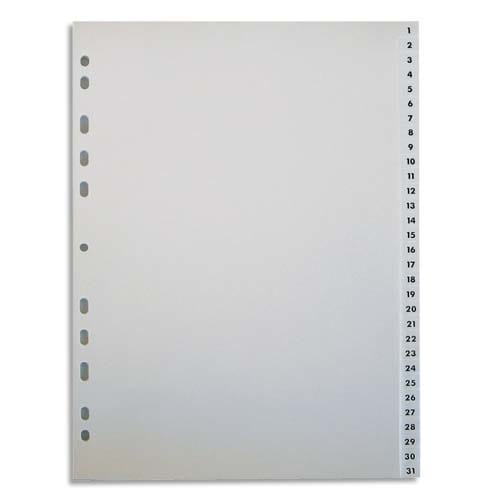 PERGAMY Jeu 31 intercalaires numériques 1-31 polypropylène format A4+. Coloris Blanc