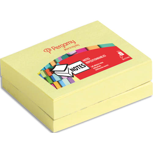 PERGAMY Lot de 12 blocs de 100 feuilles repositionnables dimensions 3,8×5,1cm. Coloris Jaune
