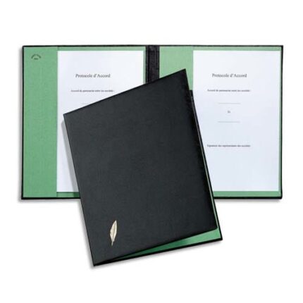 EMEY Parapheur double clip de maintien 1 compartiment couverture Noire ouatinée intérieur buvard Vert