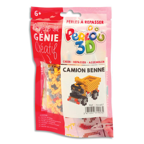 PERLOU Kit perles à repasser forme en 3D, thème camion benne