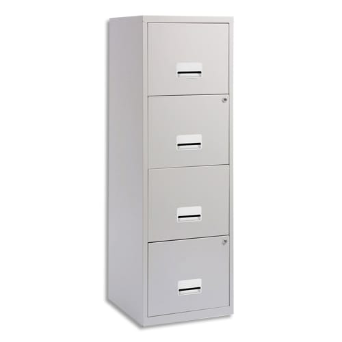 PIERRE HENRY Maxi Classeur pour DS 4 tiroirs Gris, poignée vague, fermeture sélective, L40 x H126 x P40
