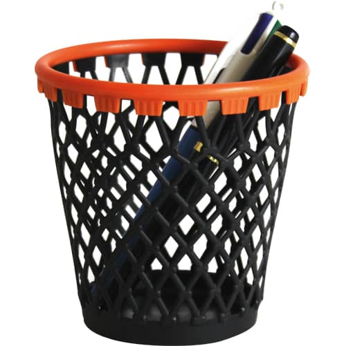PIERRE HENRY Pot à crayons plastique Basket. Dim : h.12,7xø 7/10,6cm coloris assortis: ora/blc, ora/noi