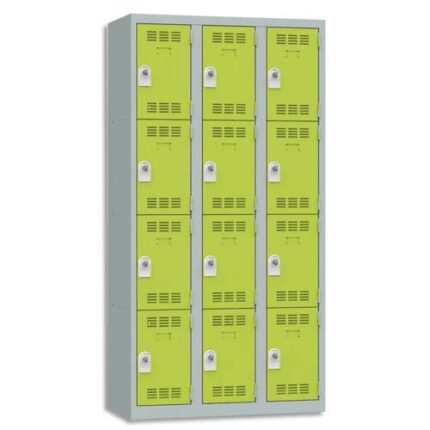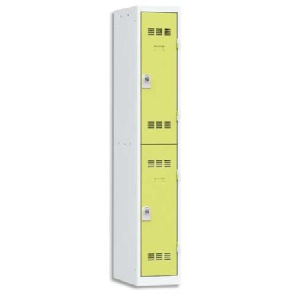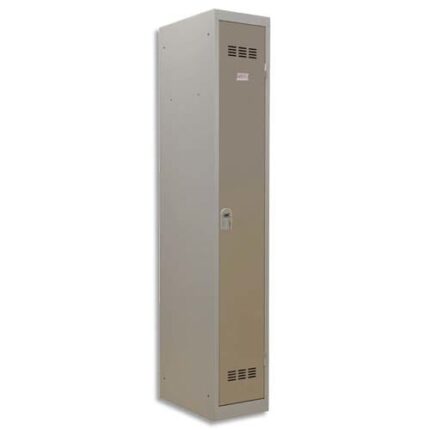 Construction monobloc soudée en tôle d’acier 1er choix épaisseur 0,7 mm. Socle fond plat. Perforations à l’arrière du fond pour permettre l’évacuation des poussières et liquides. Portes en métal avec porte étiquette. Fermeture par moraillon débraillable porte-cadenas (cadenas non fourni). Anti effraction par rotation. Niveau de résistance à l’effraction : classe C, selon la norme NF D65-760 et Norme NFD60-050. Finition peinture en poudre époxy polyester.
