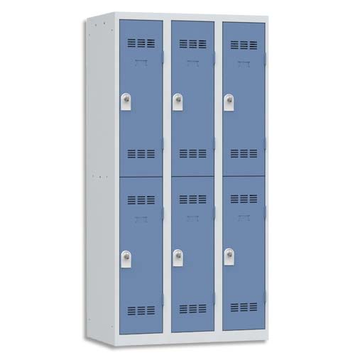 PIERRE HENRY Vestiaire 2 Cases + 3 Colonnes – Dimensions : L90 x H180 x P50 cm Gris perle Bleu