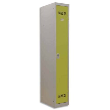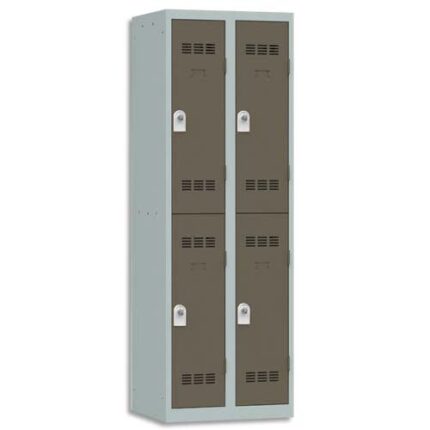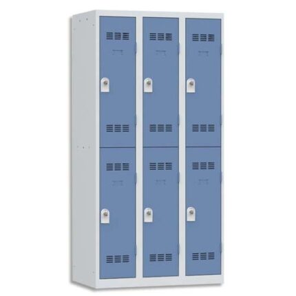 Construction monobloc soudée en tôle d’acier 1er choix épaisseur 0,7 mm. Socle fond plat. Perforations à l’arrière du fond pour permettre l’évacuation des poussières et liquides. Portes en métal avec porte étiquette. Fermeture par moraillon débraillable porte-cadenas (cadenas non fourni). Anti effraction par rotation. Niveau de résistance à l’effraction : classe C, selon la norme NF D65-760 et Norme NFD60-050. Finition peinture en poudre époxy polyester.