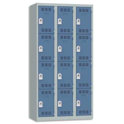 PIERRE HENRY Vestiaire 4 Cases + 3 Colonnes – Dimensions : L90 x H180 x P50 cm Gris perle Bleu