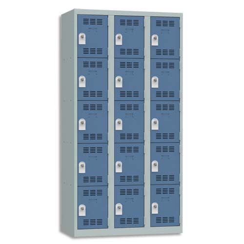 PIERRE HENRY Vestiaire 5 Cases + 3 Colonnes – Dimensions : L90 x H180 x P50 cm Gris perle Bleu