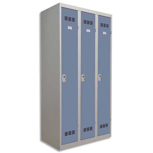 PIERRE HENRY Vestiaire métal industrie propre 3 casiers largeur 90 cm Gris perle Bleu