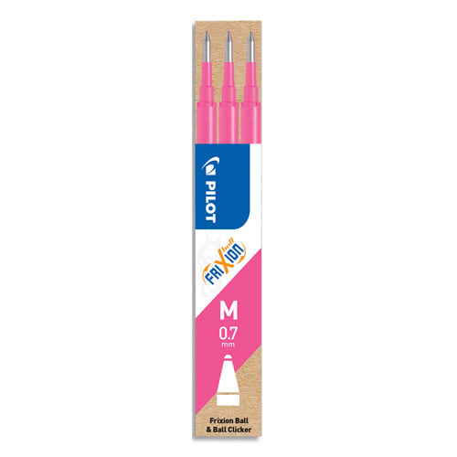 Set de 3 recharges pour roller FriXion Ball. Pointe moyenne 0,7 mm. Encre Rose