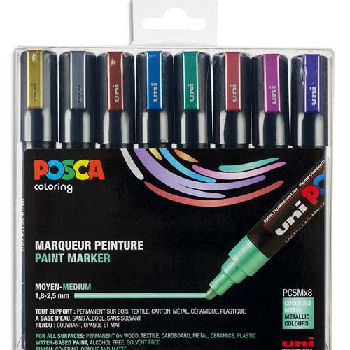 POSCA Coffret de 8 marqueurs peinture métallisés, pointe moyenne, couleurs assorties