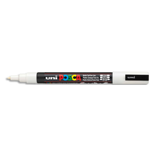 POSCA Marqueur peinture à eau, encre à pigmentation Blanche, pointe fine PC3M BL