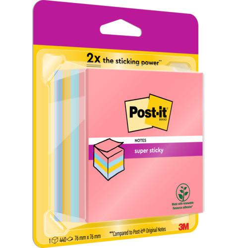 POST-IT Cube Super Sticky couleurs assorties – 440 feuilles – 76 mm x 76 mm