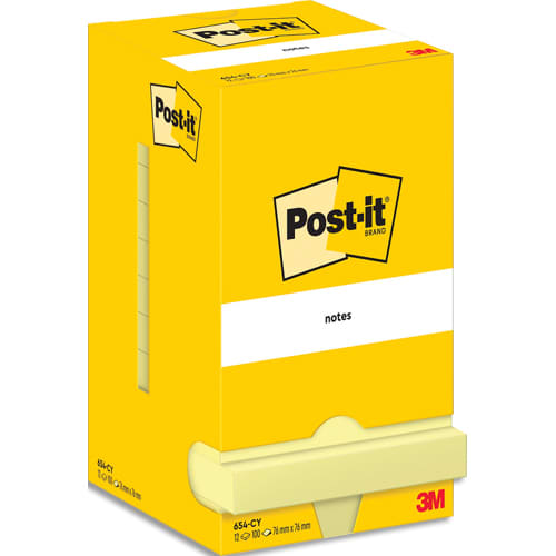 POST-IT Lot de 12 blocs repositionnables 655CY 100 feuilles. Format 7,6 x 12,7cm. Coloris Jaune