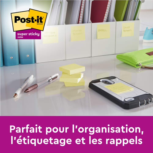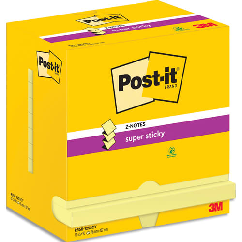 POST-IT Lot de 12 recharges repositionnables ZNOTES SUPERSTICKY 90 feuilles. Format 7,6 x 12,7cm. Jaune
