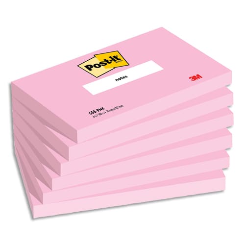 POST-IT® Lot de 6 blocs notes repositionnables rose pale FLAMANT. Dimensions 76x127mm.100 feuilles.BP1270